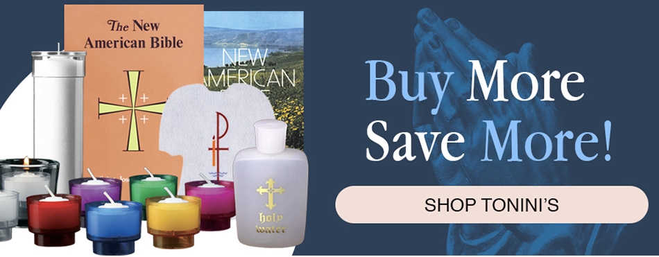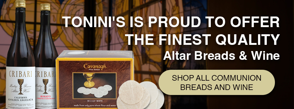 Now with over 18,000 items available through our online store, we have something for everyone. Browse through our large selection of candles. altar breads, sanctuary supplies, clergy shirts, and first communion gifts for a sampling of what Tonini's has to offer. You will be sure to find the items you need at prices you can afford.