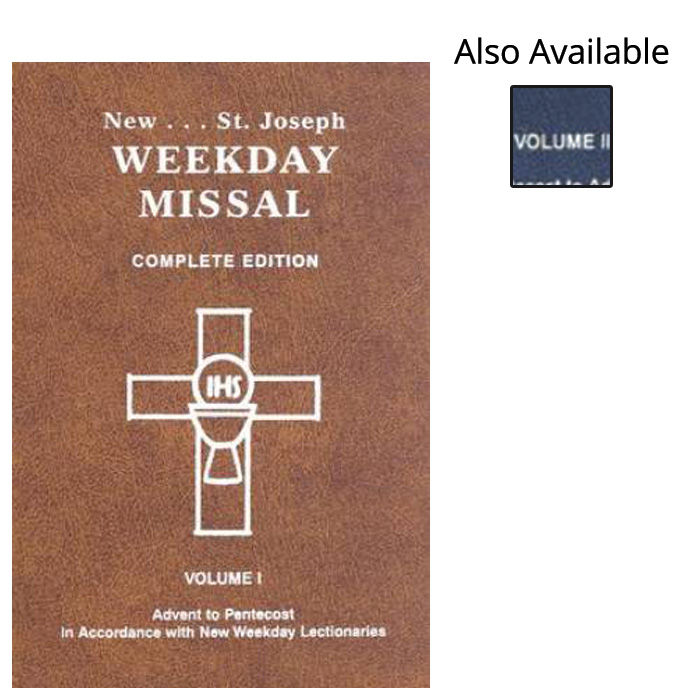 This comprehensive Saint Joseph Weekday and Sunday Missal Set, Large Print Editions, is all any Catholic will ever need to participate fully in every Mass of the year. This set consists of three volumes in an attractive and sturdy gold-embossed burgundy imitation leather case, including the Weekday Missal (Volumes I and II) and the complete one-volume Sunday Missal (Cycles A, B, and C). With sewn bindings for long-lasting durability, all three volumes are covered in imitation leather. This beautifully packaged Saint Joseph Weekday and Sunday Missal Set in Large Print is an invaluable and all-encompassing resource for priests, religious and laity.