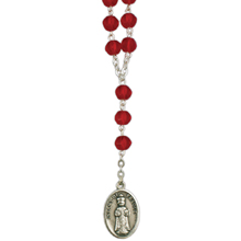 15 3/4" Holy Spirit chaplet with red glass beads.