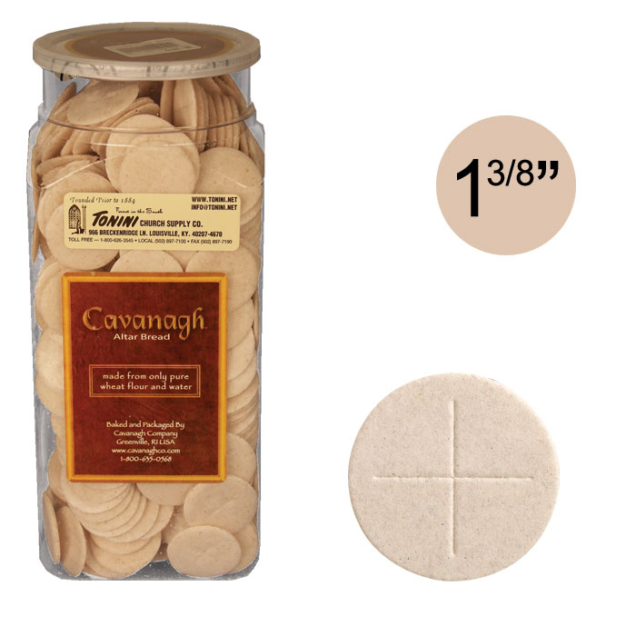 These Cavanagh brand White Altar Bread Wafers feature a cross design and measure 1 3/8" in diameter. These altar bread wafers come 250 per package.